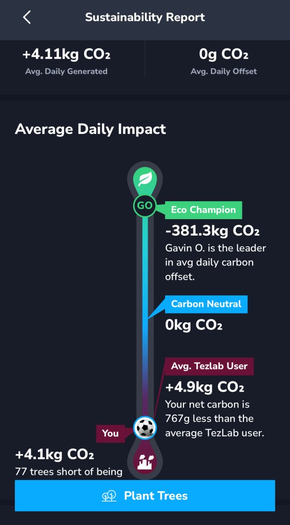 If you’re below Carbon Neutral, or if you want to reach the Eco Champion level, click the blue “Plant Trees” button.