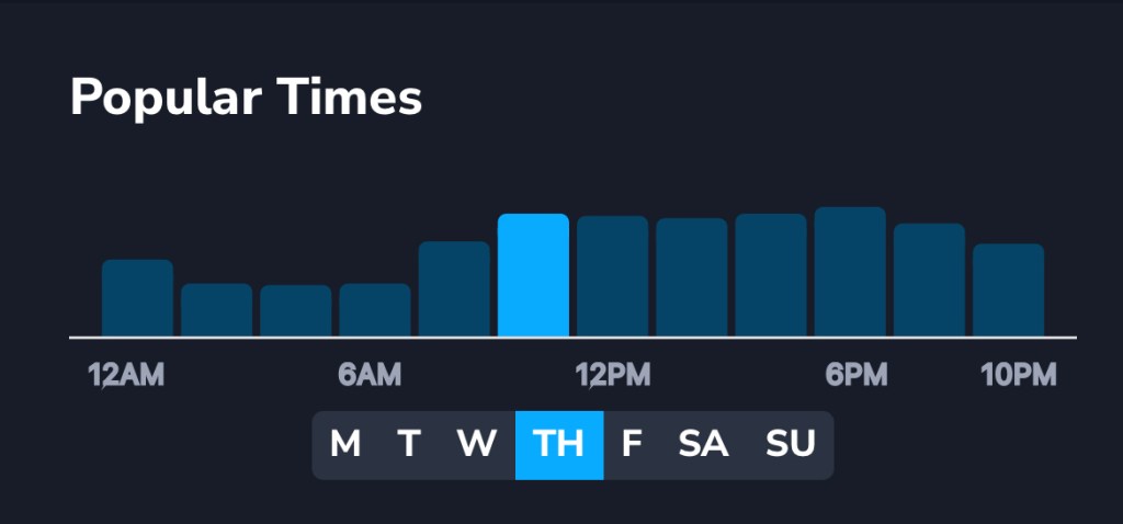 You can also check on popular times for that Supercharger, including day of week and specific time of day.