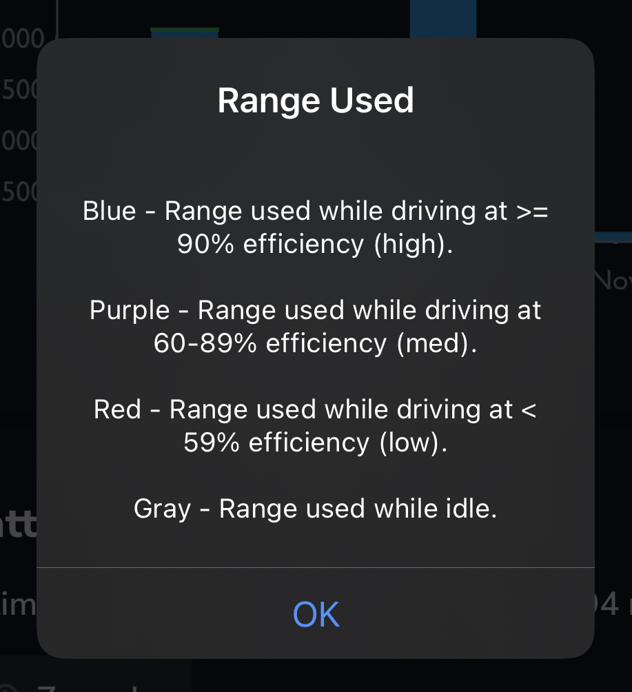 The gray parts of the bar graph show range used while the vehicle was in idle mode.
