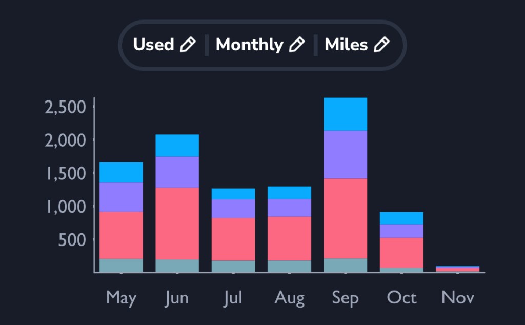 Use your Range Added vs. Used report to gain insights into trends over time as you charge and drive.