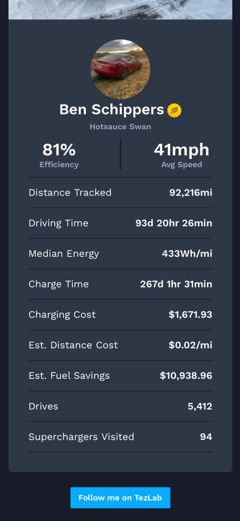 Whether you want to share your profile with family and friends, compare efficiency and charging costs with your spouse, or share your stats with followers online, we’ve got you covered.